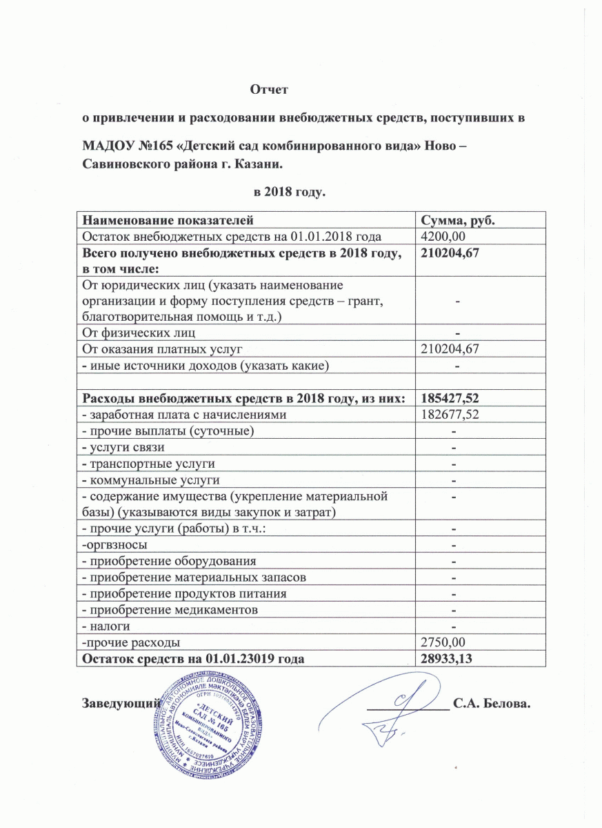 Отчет о привлечении и расходовании внебюджетных средств
