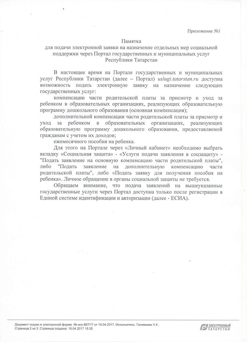 ПАМЯТКА для подачи электронной заявки на назначение отдельных мер социальной поддержки через Портал государственных и муниципальных услуг Республики Татарстан