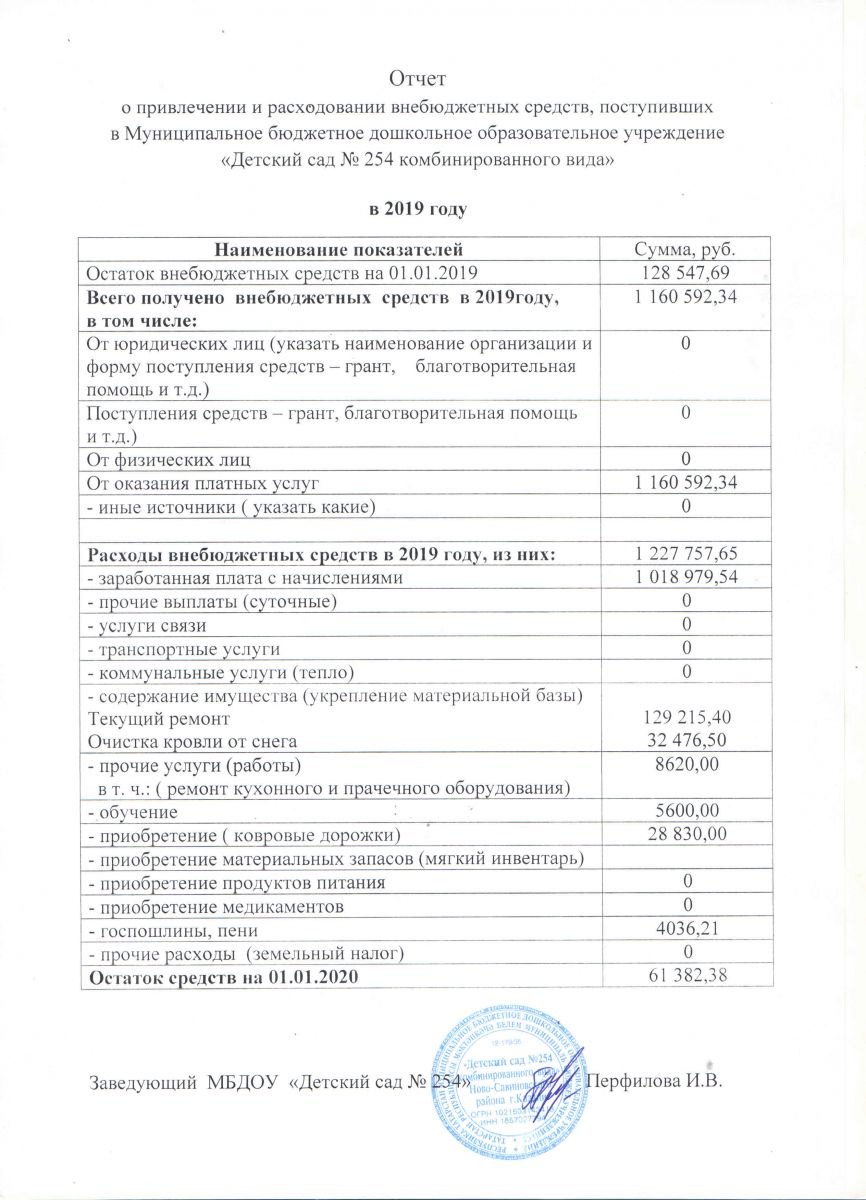 Отчет о привлечении и расходовании внебюджетных средств за 2019 год