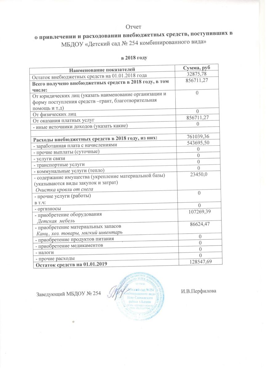 Отчет о привлечении и расходовании внебюджетных средств за 2018 год