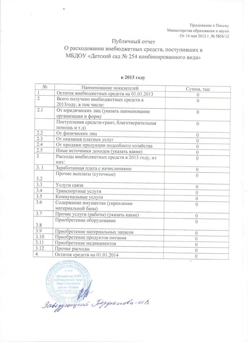 Отчет о привлечении и расходовании внебюджетных средств за 2013 год