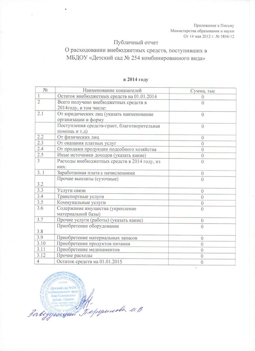 Отчет о привлечении и расходовании внебюджетных средств за 2014 год