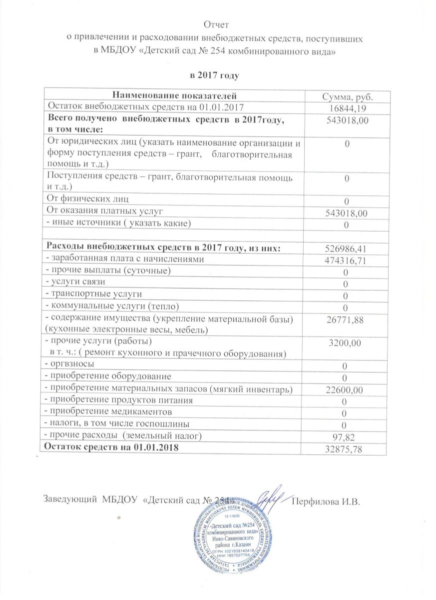 Отчет о привлечении и расходовании внебюджетных средств за 2017 год