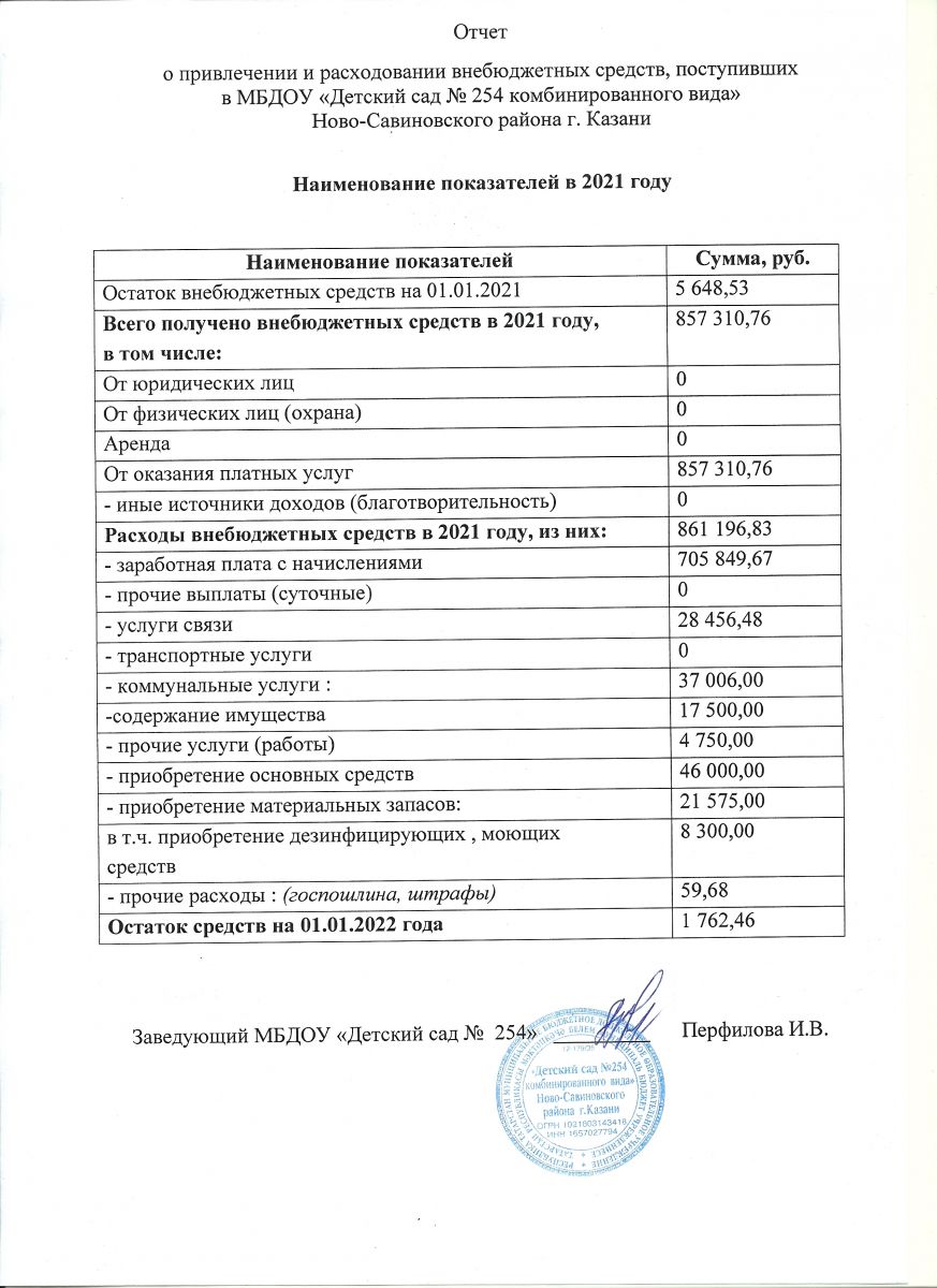 Отчет о привлечении и расходовании внебюджетных средств за 2021 год