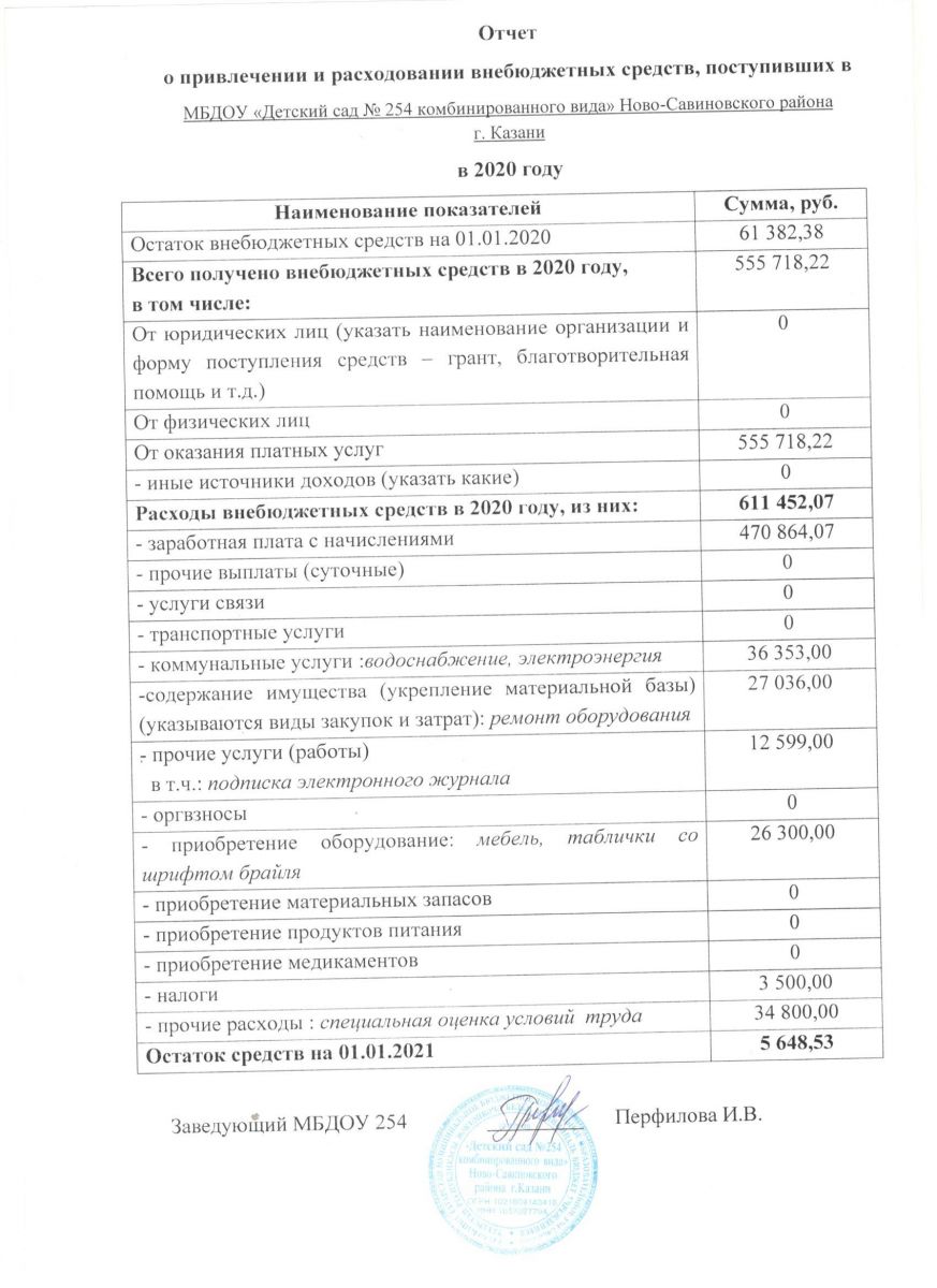 Отчет о привлечении и расходовании внебюджетных средств за 2020 год