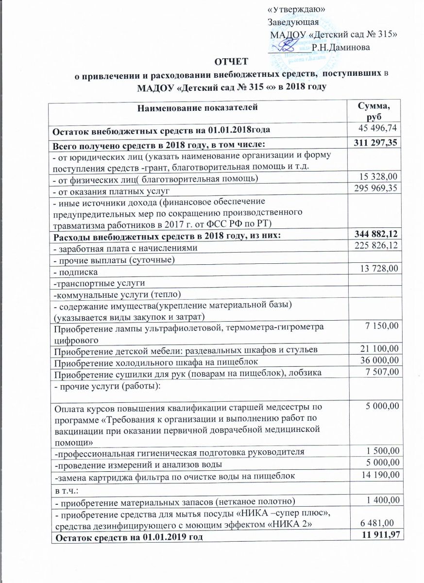 Отчет о привлечении и расходовании внебюджетных средств 2018 год