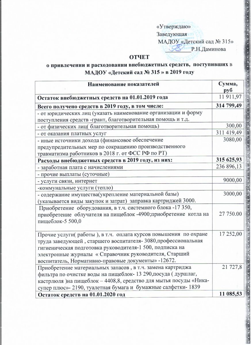 Отчет о привлечении и расходовании внебюджетных средств 2019 год