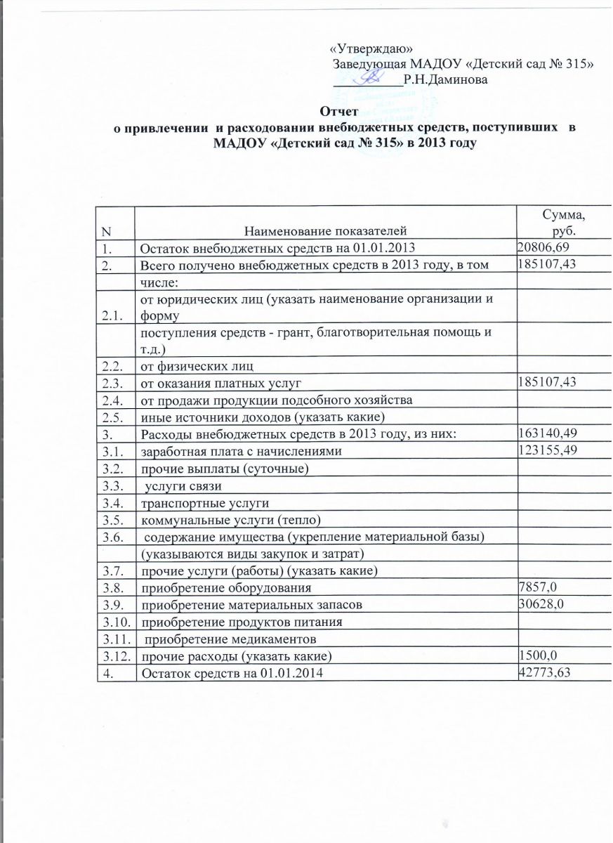 Отчет о привлечении и расходовании внебюджетных средств 2013 год