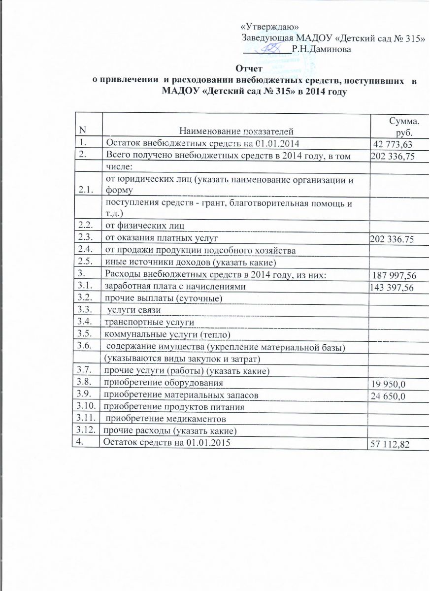 Отчет о привлечении и расходовании внебюджетных средств 2014 год