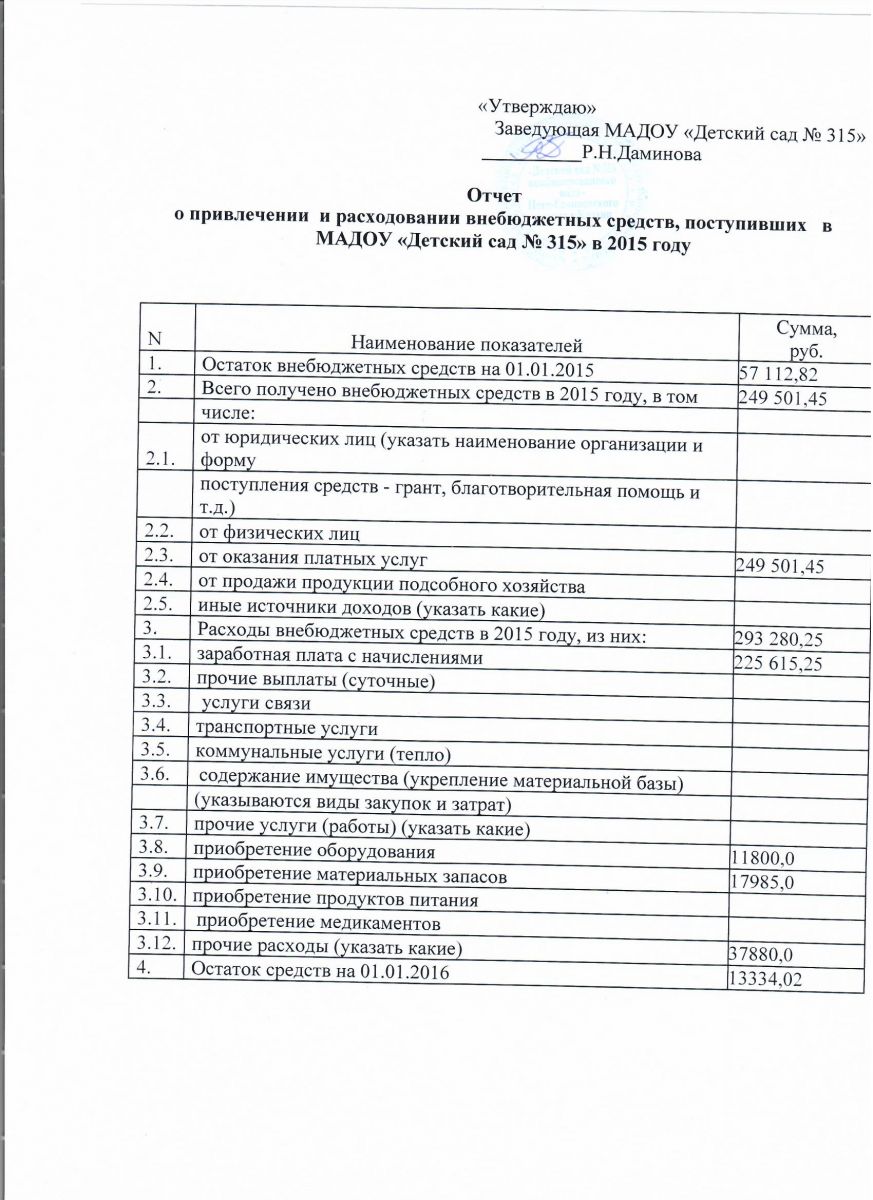 Отчет о привлечении и расходовании внебюджетных средств 2015 год