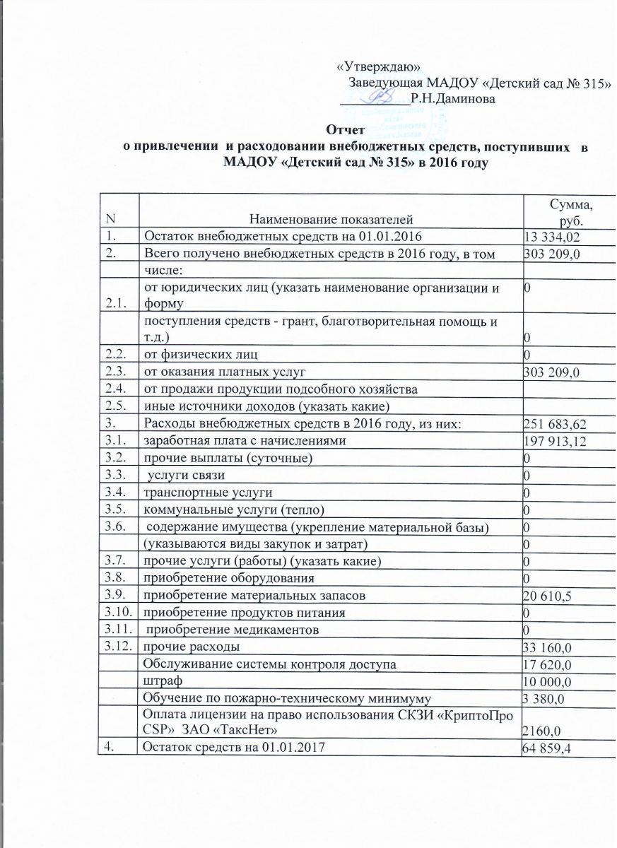 Отчет о привлечении и расходовании внебюджетных средств 2016 год