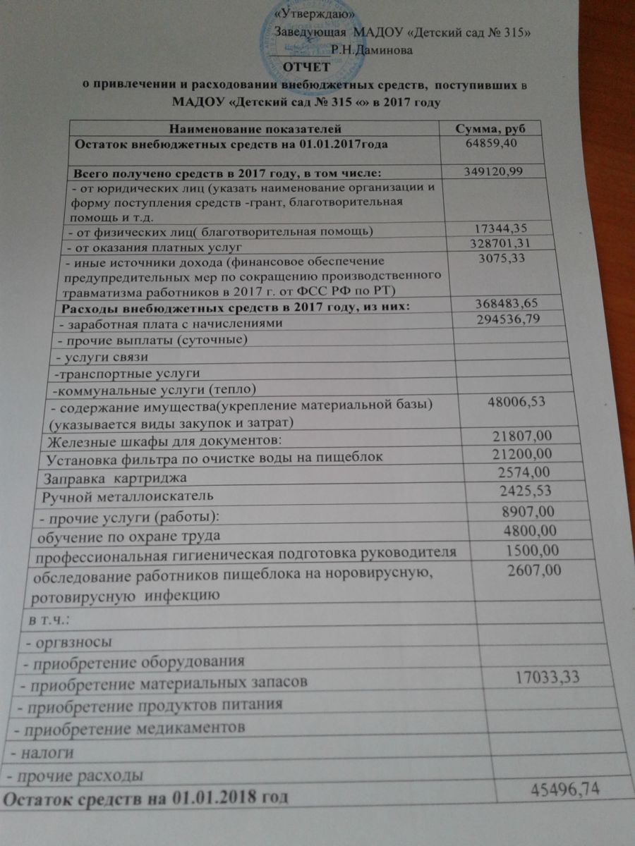 Отчет о привлечении и расходовании внебюджетных средств 2017 год