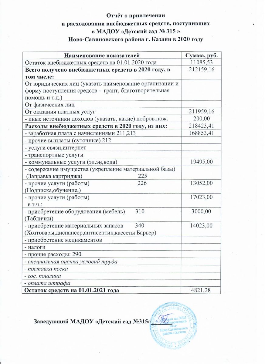 Отчет о привлечении и расходовании внебюджетных средств 2020 год