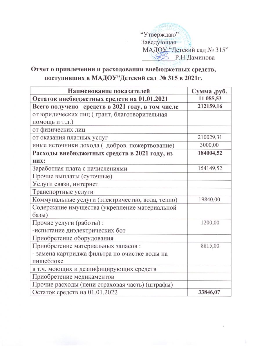 Отчет о привлечении и расходовании внебюджетных средств 2021 год