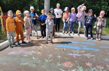 Сегодня мы рисовали на асфальте портреты своей семьи. Мероприятие посвященное "Дню семьи, любви и верности".