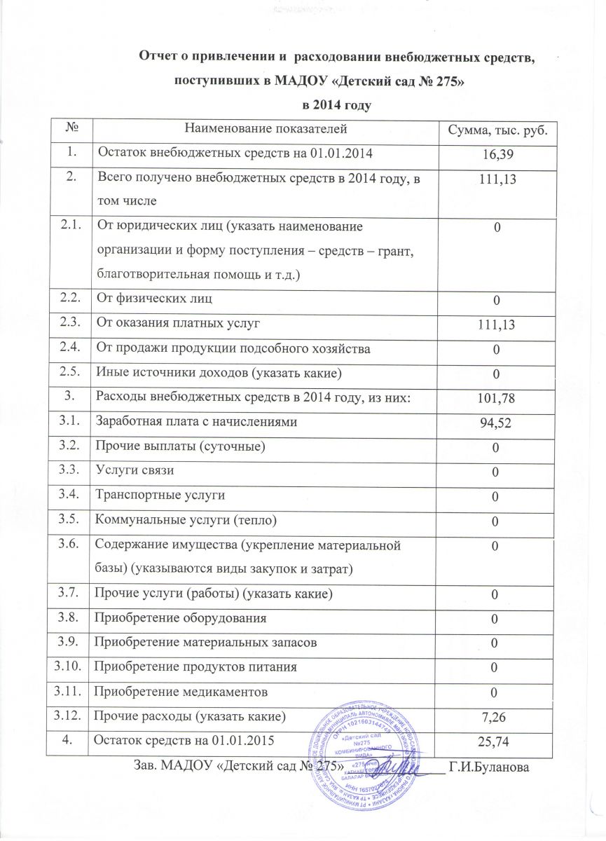 Отчет о привлечении и расходовании внебюджетных средств, поступивших в МАДОУ «Детский сад № 275» в 2014 году /upload/storage/org2950/files/2014.jpeg