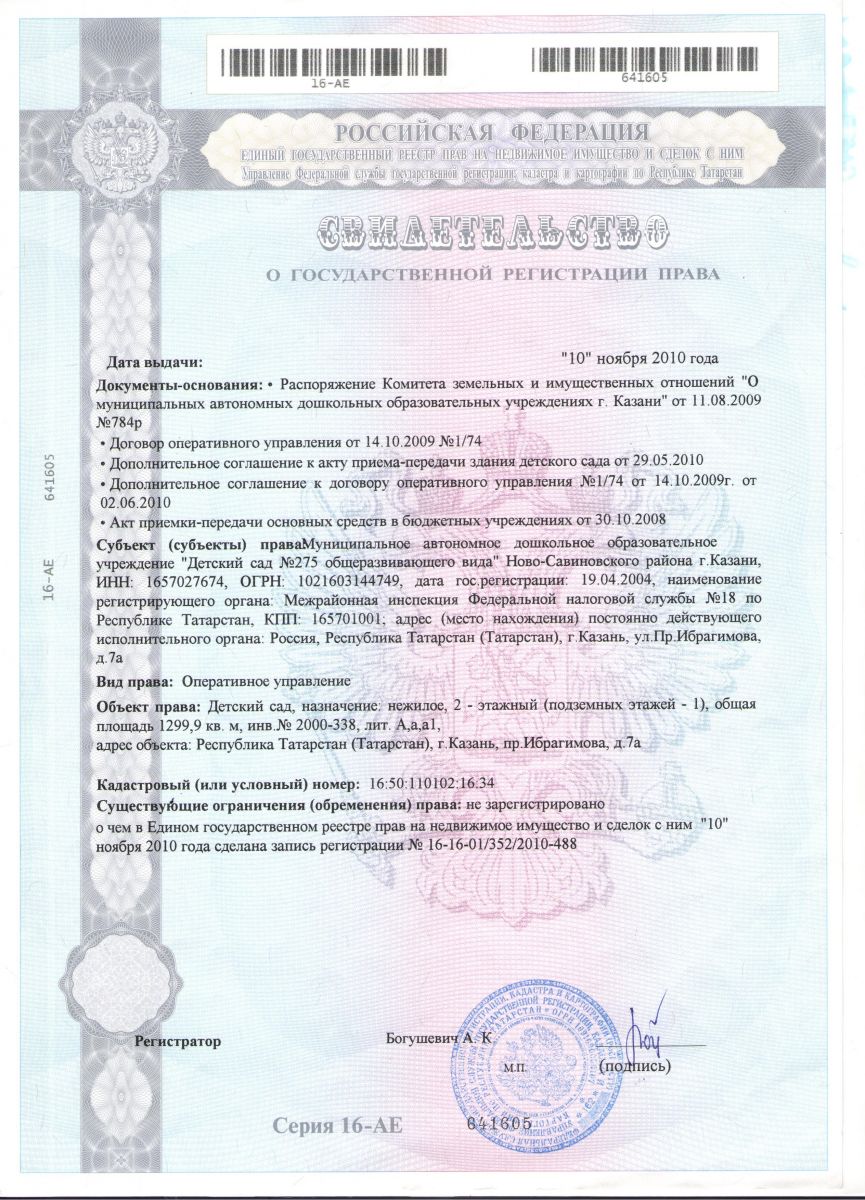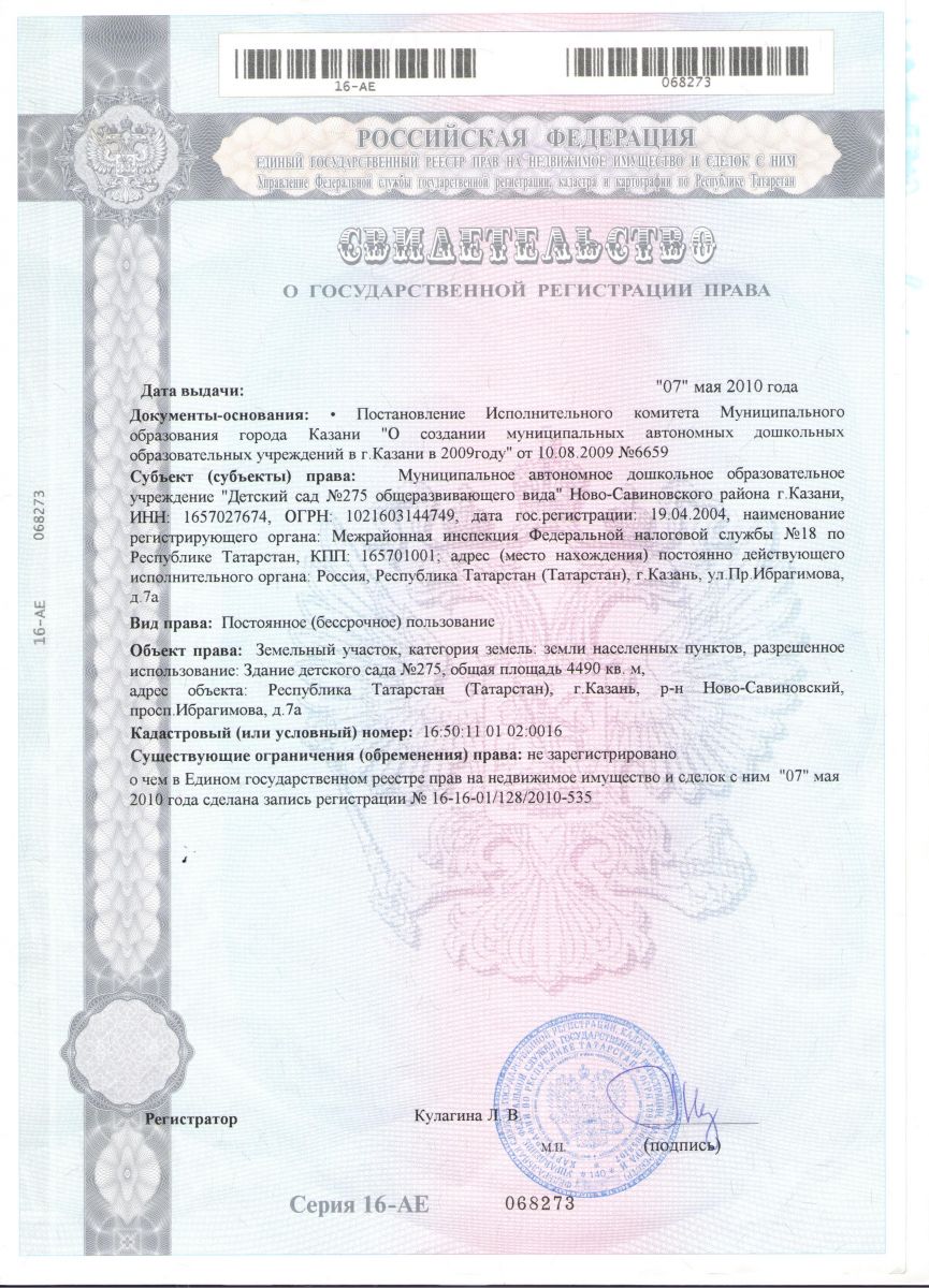 Короткое название: | МАДОУ "Детский сад № 275" |