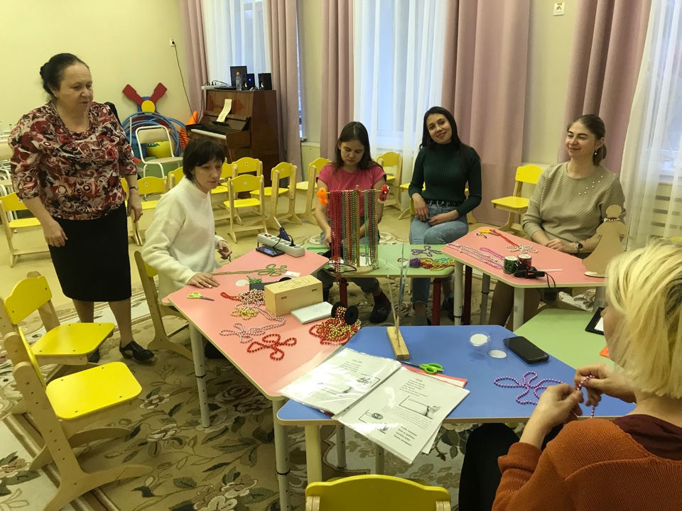 Опубликовано: 10.11.2022Сегодня провели мастер-класс с педагогами ДОУ. Работая по программе "Кукляндия", мы используем не только куклы, но так же и различные технологии, такие как "Бусоград". В коллективе много новых педагогов, которые только слышали и редко видели бусы. Коллеги поделились опытом работы, показали способы работы с бусами, где их приобрести, какой длинны их делать. И конечно же, были показаны основные элементы и упражнения работы с бусами.