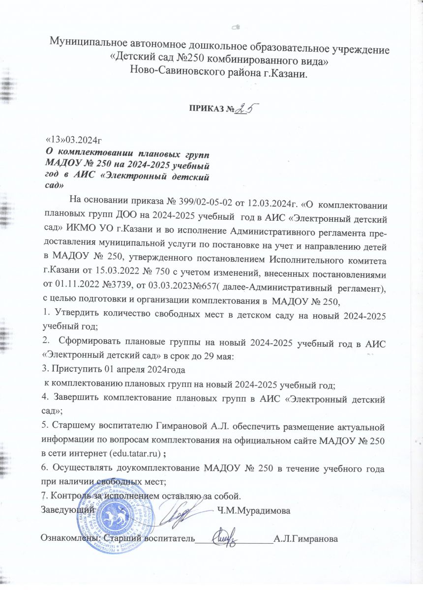 Комплектование группа на 2024 - 2025 уч.год