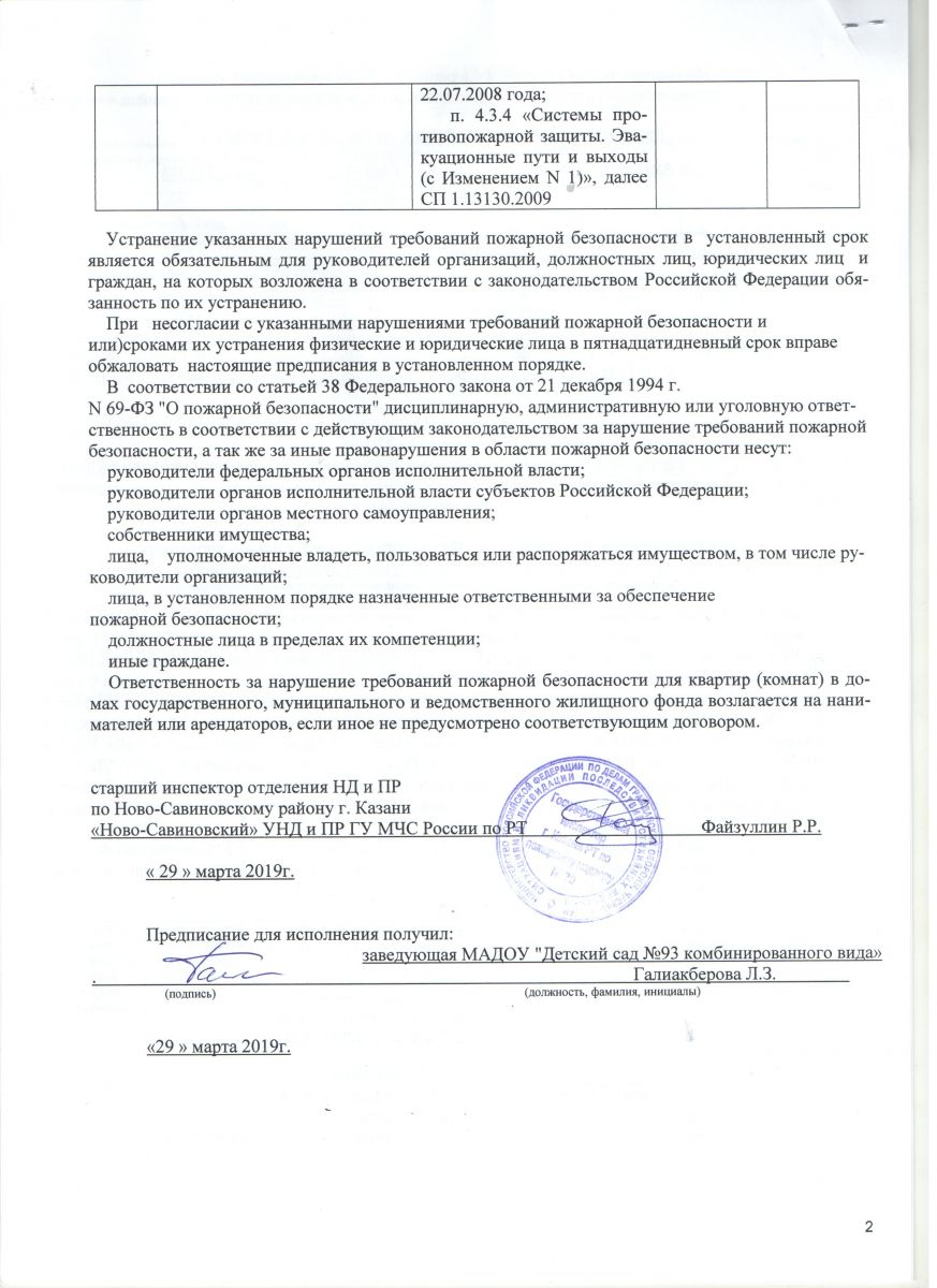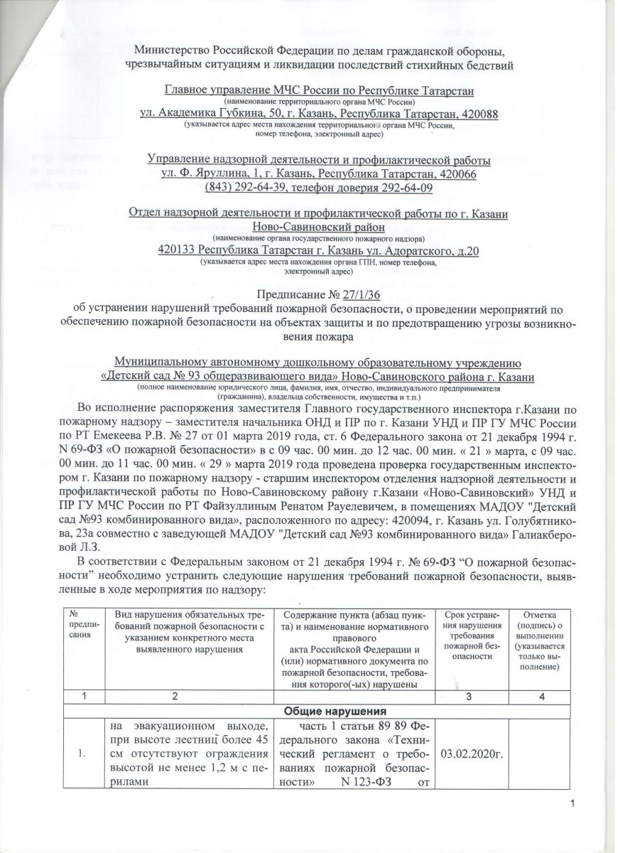 Предписание УНД и ПР ГУ МЧС России по Рт от 29.03.2019