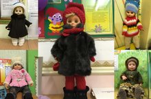 В каждой группе Вас встретят куклы в сезонной одежде. Кто-то в шубке, кто в манто, а кто-то в вязанном пальто.