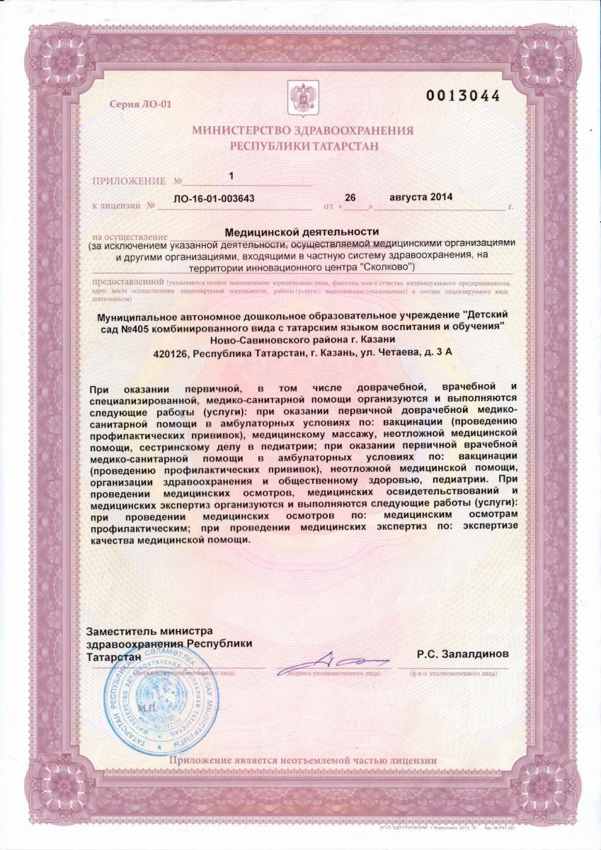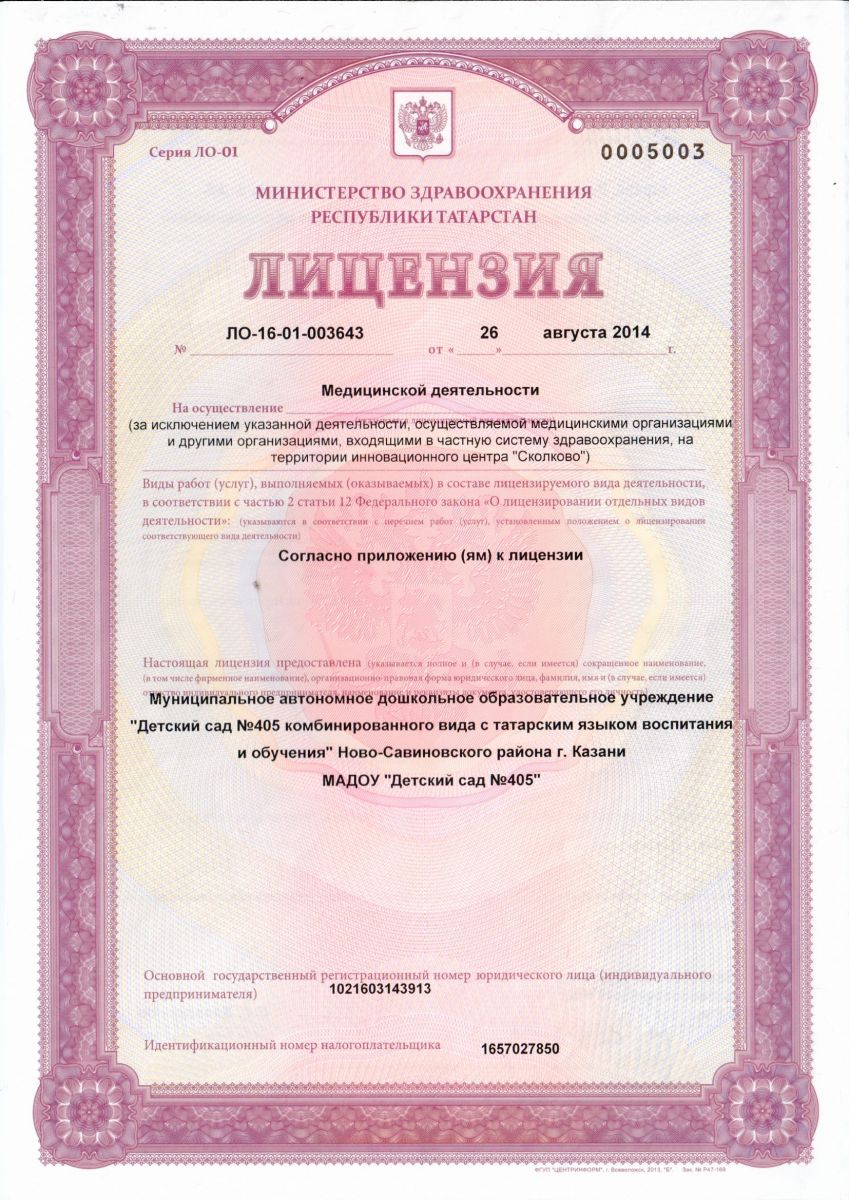 - Лицензия медицинской деятельности МАДОУ № 405 jpg