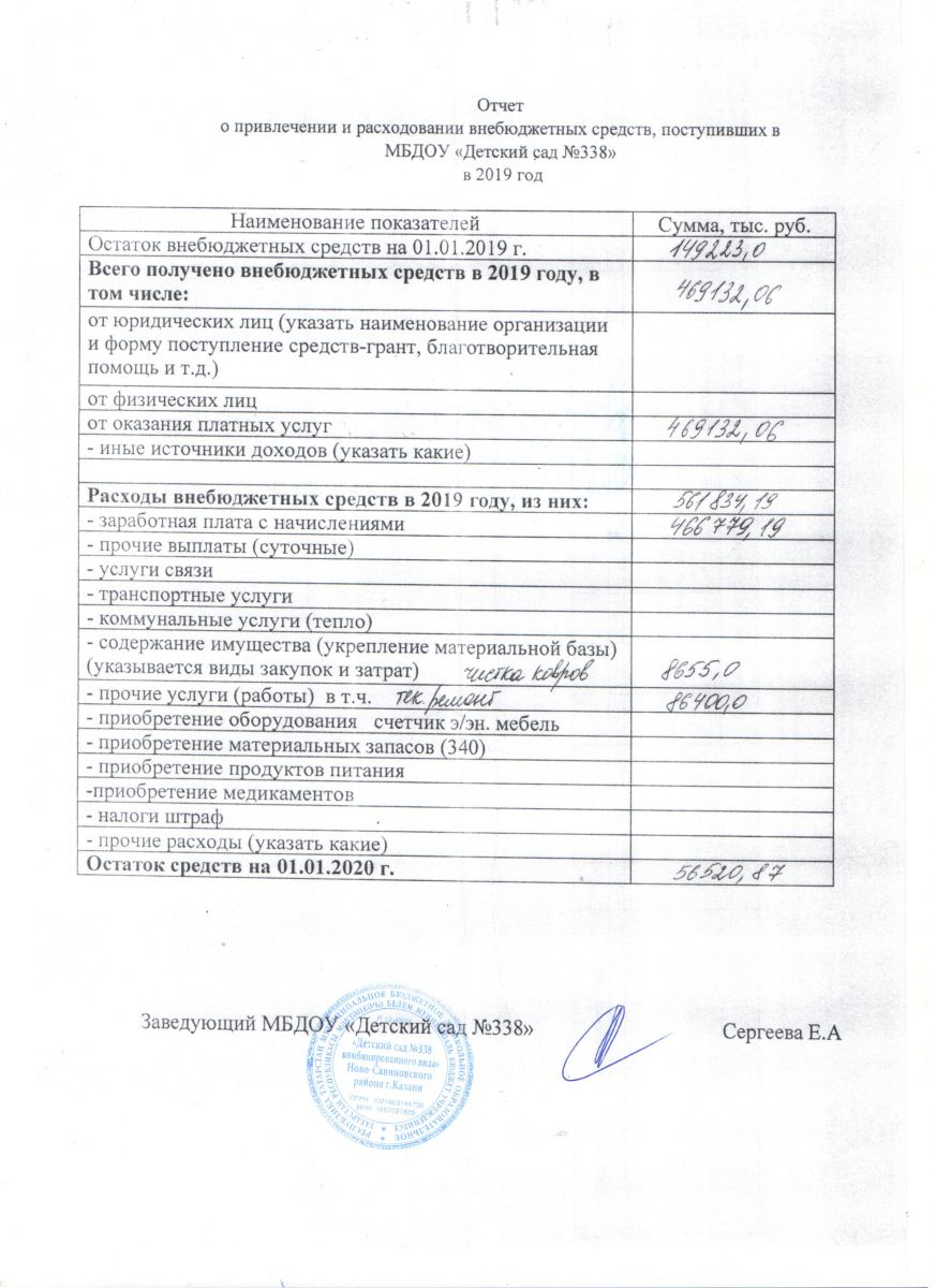 Отчет о привлечении и расходовании внебюджетных средств в 2019 году