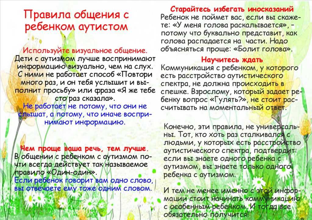 Памятка для родителей Правила общения с ребенком аутистом