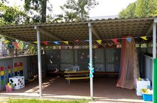 Наш детский сад принял участие в районном смотре-конкурсе игровых площадок. Каждая группа на своих игровых площадках организовала развивающую среду для оздоровления, обучения и игр детей. Также на территории детского сада есть огород, ферма, уголок по ПДД, физкультурная площадка, разметка для бега, метания, прыжков, тропа здоровья, лесопарк 100-летия ТАССР, цветочный сквер 75-летия Победы и другие интересные уголки. Педагоги орагнизовали "познавательные" площадки - "Мобильный музей" для ознакомления с достопримечательностями республики, "Лукоморье" с мобильной бибилиотекой, материалом для развития речи детей на 3 языках, "Лаборатория знаний" с различными предметами для опытов и экспериментирования.