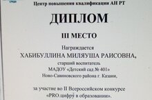 Поздравляем старшего воспитателя с присвоением 3 места во Всероссийском конкурсе "PRO.цифру в образовании" в номинации "Дошкольное образование".