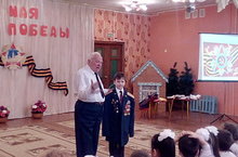 В детском саду прошло торжественное мероприятие, посвященное 71 годовщине Великой Победы, в котором принимал активное участие ветеран Великой Отечественной войны полковник Смирнов Владимир Васильевич. Владимир Васильевич более 10 лет приходит в наш детский сад, и каждый год делится воспоминаниями о нелегких годах военной поры. Наши дети хорошо знают Владимира Васильевича, и каждый год ждут его в гости.