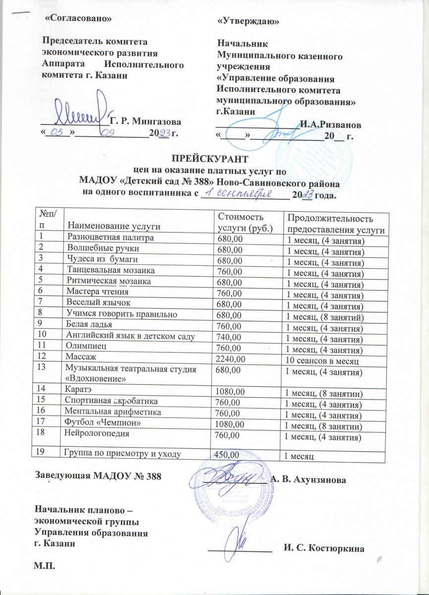 Прейскурант 2023-2024