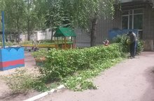 Работа на территории детского сада 03.06.2018Участок детского сада нуждается в регулярном уходе. Ежегодно работники проводят декоративную обрезку деревьев и кустарника, вырубку сухих и низких веток и молодой поросли. Убирают участок ежедневно утром за 1-2 ч до прихода детей и по мере загрязнения территории. Траву на газонах своевременно скашивают.