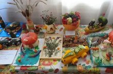 "Дары осени" 31.10.2017В нашем детском саду прошла выставка поделок из природного материала, овощей и фруктов «Дары осени».На выставке можно было увидеть много разнообразных красочных букетов и цветочных композиций. Каждая работа – шедевр! Практически для каждого букета была изготовлена необычная ваза: из тыквы, кабачка, шишек и др. Все букеты были украшены бусами рябины и гирляндами ранеток, сухими листьями и цветами, еловыми шишками, а также другим подручным природным материалом. Помимо цветов, манящих своим сладким ароматом, можно было увидеть множество поделок из различных овощей. Все поделки отличались особой фантазией и выдумкой. Не меньше внимания привлекли к себе и цветы, сделанные искусственно, но так искусно. Розы из листьев клена, тюльпаны из болгарских перцев удивили и порадовали всех посетителей выставки. Самыми требовательными зрителями оказались, конечно же, дети. Дружная семейка из тыквы зажгла огоньки в глазах ребят и вызвала радость и удивление. Не остались равнодушными к чудесным поделкам и взрослые – родители, педагоги и гости. Выставка порадовала большим количеством работ, выполненных на высоком уровне.