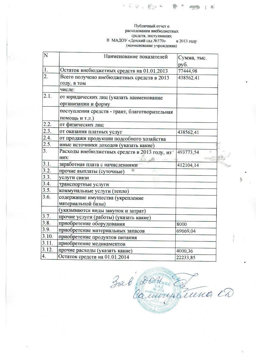 Отчет о привлечении и расходовании внебюджетных средств за 2013 год