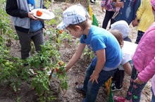 Зеленое царство начнёт вызывать огромный интерес ребенка, если взрослые научат наблюдать за растением, видеть в зеленом ростке особое живое существо, жизнь которого целиком зависит от того, получает он уход или нет. Только с помощью взрослых дошкольник может понять, что жизнь растения зависит от наличия тепла, света и хорошей почвы, научится отличать здоровое и сильное растение от слабого, хилого, требующего «лечения». Научившись понимать состояние растений, ребенок будет сочувствовать и ухаживать. Практической деятельностью является непосредственное участие детей в уходе за растениями. Приобщение к посильному труду по уходу за растениями – это, прежде всего развитие таких качеств, как ответственность за выполнение поручения, за полученный результат, обязательность, целеустремленность. Воспитанники нашего детского сада совместно с воспитателями с начала лета ухаживали за растениями. К началу августа у нас уже созрели плоды - помидоры, кабачки, огурцы, лук, картофель.