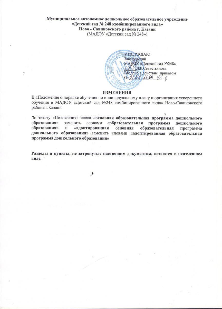 Изменения в Положении о порядке обучения по индивидуальному плану и организация ускоренного обучения