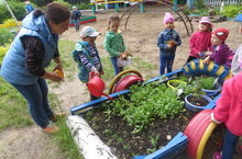 Трудовое воспитание. Посильный труд на мини-огороде группы № 12 07.06.2018