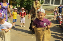 Сабантуй 09.06.2014 У нас прошел Сабантуй. Дети состязались в ловкости, силе: прыгали в мешках,переносили в ложках яйца, перетягивали канат, носили воду. Всем было весело