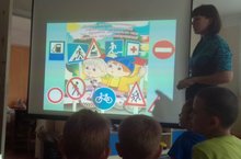 "Правила дорожные-всем знать положено!" 15.09.2014 Сегодня в подготовительной группе № 3 воспитатель Евгения Владимировна Камалова, в рамках Месячника безопасности (с 20 августа по 20 сентября),провела с детьми познавательное занятие по изучению правил дорожного движения "Правила дорожные-всем знать положено!"