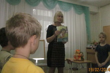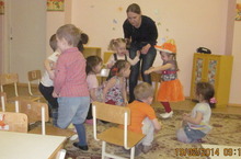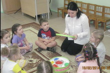 На фоторгафии воспитатель первой младшей группы № 1 Ольга Владимировна Волковая со своими воспитанниками. Ольга Владимировна показала татарскую игру "Лисичка и курочки".