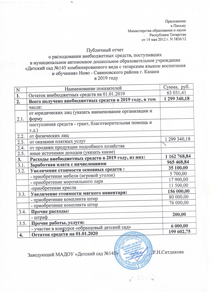 Отчет о привлечении и расходовании внебюджетных средств за 2019 год