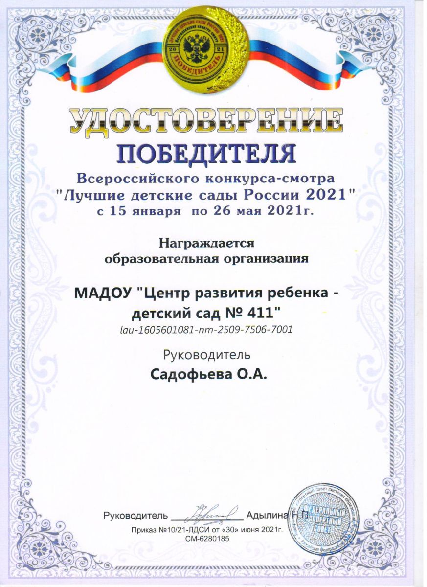 Поздравляем наш детский сад с победой в конкурсе "Лучшие детский сады России 2021"