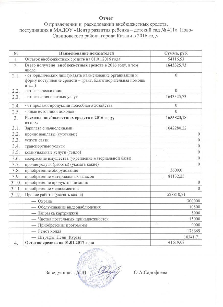 Отчёт о привлечении и расходовании внебюджетных средств за 2016 год