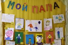 Наши воспитанники тоже активно готовились к этому празднику и подготовили рисунки на выставку "Мой папа".