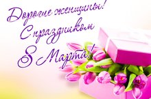 Позвольте поздравить вас с этим праздником весны, любви и красоты - с 8 марта! Пусть ваша душа будет наполнена радостью от искренних пожеланий, красивых цветов и приятных подарков. Пусть первые лучи весеннего Солнца принесут достаток и понимание в дом. С Международным женским днем!