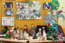Наши воспитанники создавали новогоднюю сказку своими руками. На выставке представлены рисунки, поделки.