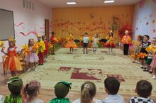 31 октября в детском саду организовано развлечение «Осень золотая» для всех возрастных групп. На празднике приняли участие все дети детского сада. На праздник к ребятам пришли Осень и сказочные персонажи, они участвовали в играх, хороводах, пели песни и танцевали вместе с детьми.