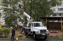 7 сентября 2023 года во втором здании детского сада, специальными службами, организована санитарная обрезка деревьев.