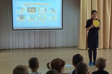 Дети старших и подготовительных групп посмтрели мультфильмы и поиграли с инспектором.